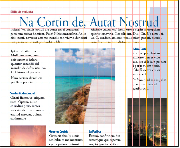 The final task involves adjusting the content on page 2. Choose View > Grid to display the grid overlay on the page to help placing objects. Try working with the View > Snap to Grid command toggled on and off.