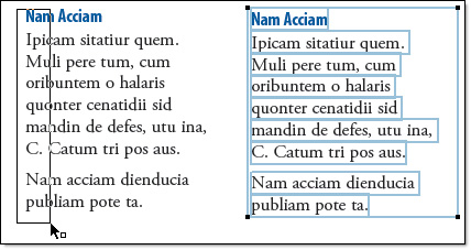 Here’s one final tip for today: Learn to finesse your object selections on the page. There’s nothing more frustrating than trying to select a certain amount of text, and getting the background and other images along with the selection. Instead, try my method, shown in Figure 9. As you see at the left, click and drag with the TouchUp Object tool in an area that’s free of other items, and only drag to hit the items. When you release the mouse, you’ll have all the objects you want selected, and none of the extra items.