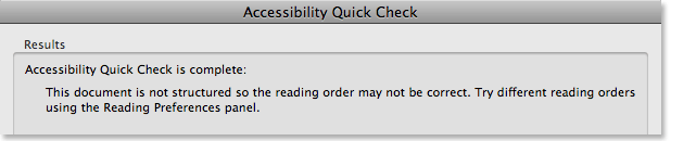 Fig 3: Acrobat 9’s Quick Check performs a basic accessibility analysis.
