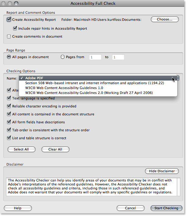 Adobe's disclaimer on the Accessibility Checker states: