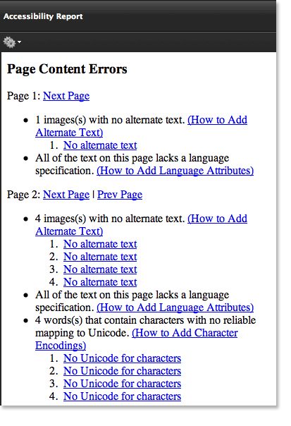 Figure 4: Acrobat 9’s Full Check performs a more detailed accessibility analysis.