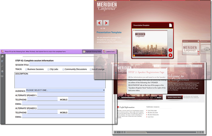Based on the final-product requirements, the best way to present the package is using a PDF Portfolio created in Acrobat X. A Portfolio provides an easy-to-use interface that's branded for the conference. In response to sponsor or speaker queries, you can send one identifiable package—far superior to an email with a group of attachments (Figure 13).