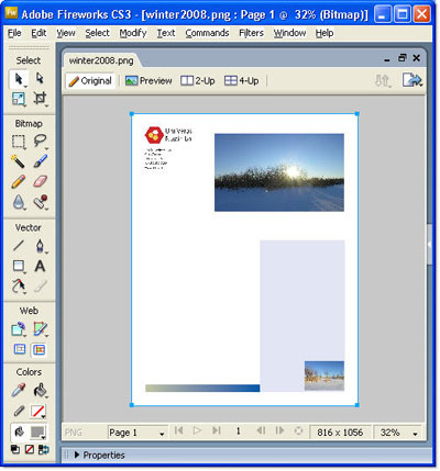 Suppose you have made a PDF presentation from a number of images and other elements, and decide the layouts are perfect to use as the basis for some new Web pages. One way to take advantage of the interaction among Adobe CS3 programs is to export the PDF pages as individual images, which can then be used in a program such as Fireworks to serve as a Web page mockup (Figure 4).