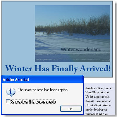 Suppose you have a PDF file for a project and need an image from it for another use, but don't have the source images. Acrobat to the rescue! For simple copy-and-paste action, use the Select tool.