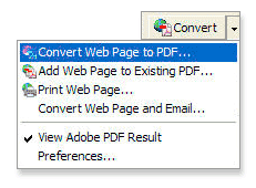 Step 1: Click the Convert button in the PDF Toolbar in Internet Explorer, and select Convert Web Page to PDF. It's that simple.