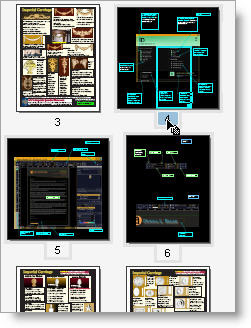 Try a hybrid page-selection workflow: In a document containing mainly text, you may need to scroll through the pages to find the content you want to work with. Then select the page thumbnails and drag them into the target document visually.