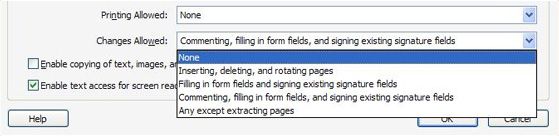 Step 3: Select the level of Printing Allowed and Changes Allowed.