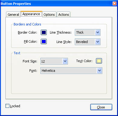 So to begin, open a sample PDF file. This can be a form you are already working on, or a new blank PDF for testing the idea. Add a button to the form. The button should initially display in the Up position so set up the Button appearance properties as follows (Figure 1 and Figure 2):