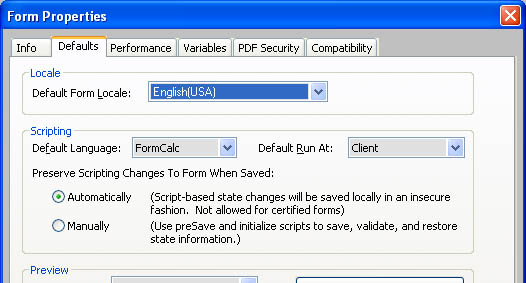 3. Under "Preserve Scripting Changes to Form When Saved" Select "Automatically."