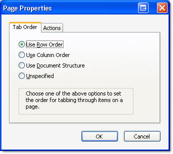 2. Select Options > Page Properties to open the Page Properties dialog box and click Tab Order (Figure 5).