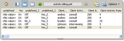 Acrobat lets you amalgamate the returned data into a CSV (comma-separated value) file for use in a spreadsheet or database table.