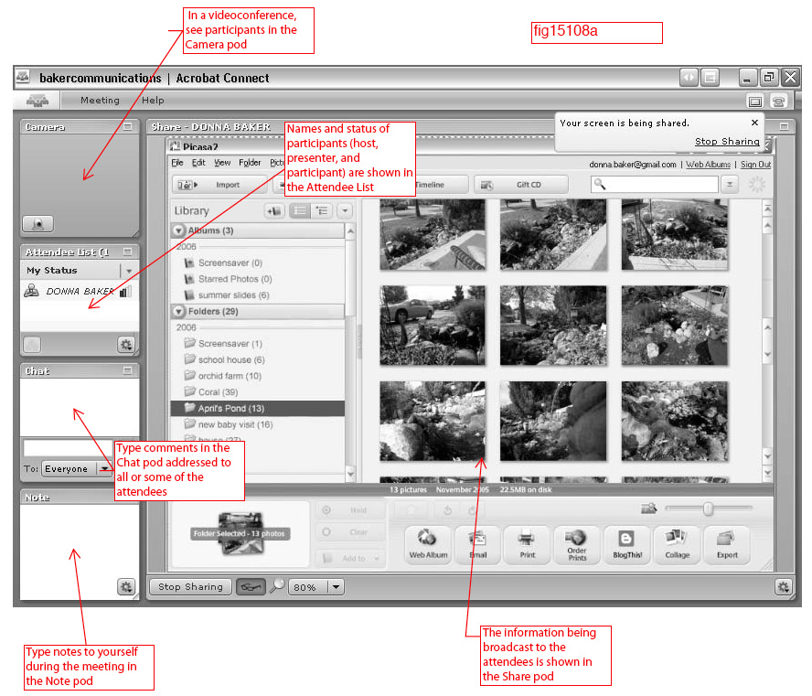 The Acrobat Connect interface is composed of a number of segments called pods shown in Figure 108a: