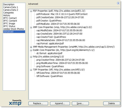 Click Advanced to show the metadata schemas associated with the PDF file and then click the icon to the left of the heading name to display its contents (Figure 3). The listings include PDF properties, XMP properties, Dublin Core properties (a set of 15 generic XML tags for tracking and cataloging web pages and creating metadata), and other image and file standards’ properties.