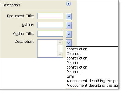 If you look at the Description dialog box shown in Figure 4, you’ll notice drop-down arrows to the right of the fields. Any content typed into a field in the dialog box for a document that supports XMP is stored on your system. Click an arrow to display the content entered in the associated field and select an option.