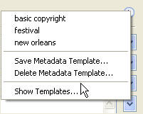 Click the circled right arrow at the top right of the dialog box to display a menu for managing metadata files (Figure 5). Choose an existing template or create a new template from the content entered in the Additional Properties dialog box.