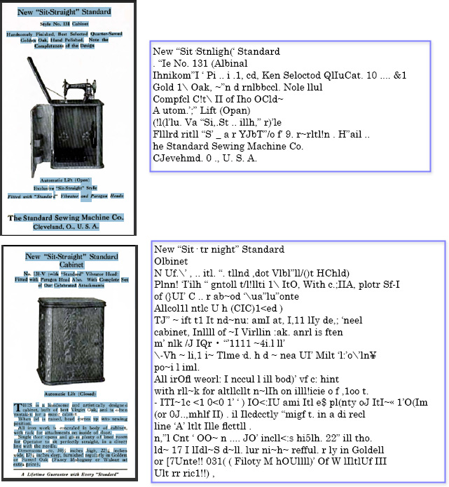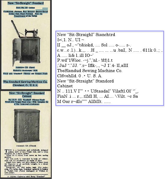 Granted, my experiment was destined to fail, since it’s unlikely the OCR process can capture content from such small, indistinct text. If I needed to save the content to be used for indexing or searching, the solution is to correct the images in Photoshop and save as PDF for the best display of the pages themselves. Then I have choices (and more experimentation) for associating the text with the images.
