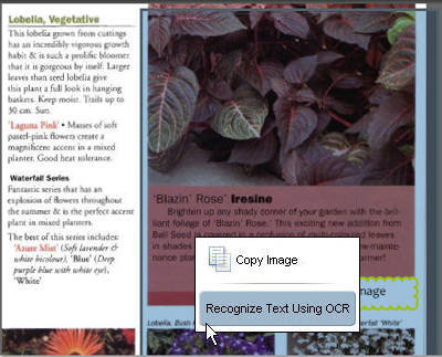 Tip: If you hold the tool over the image for a few seconds, the popup menu displays, shown in the figure. The only commands available are to capture the text or copy the image—clearly there isn’t any text on the page.