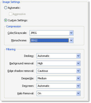 The goal in scanning images is to produce a balance between quality and file size. To optimize a scanned page, click Options (next to the Optimization slider) on the Acrobat Scan dialog box shown in Figure 1, or choose Document > Optimize Scanned PDF to open the dialog box shown in Figure 7.